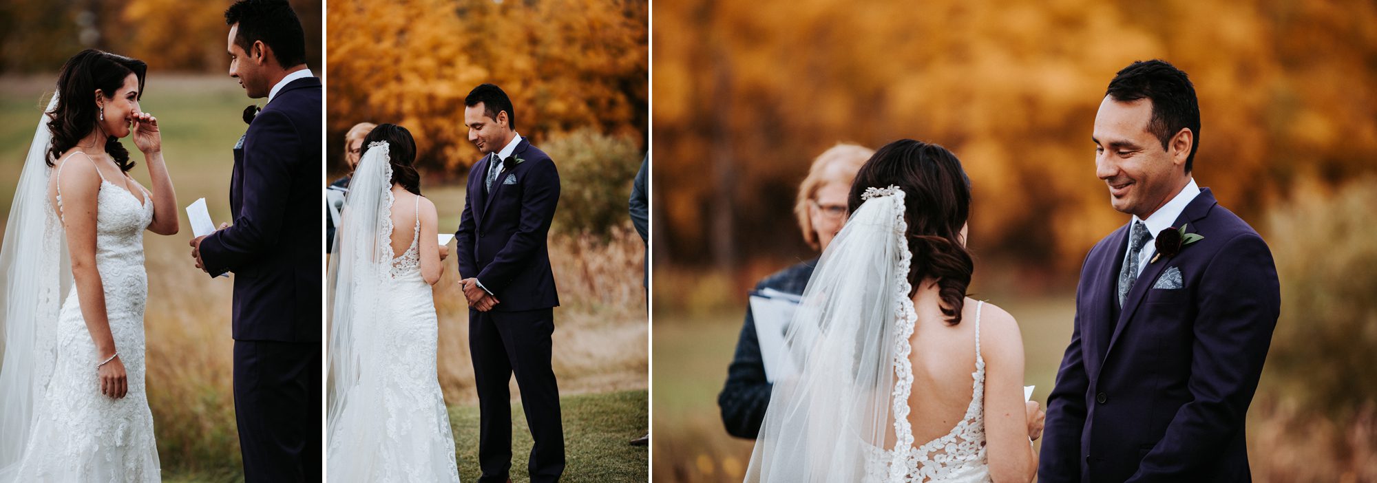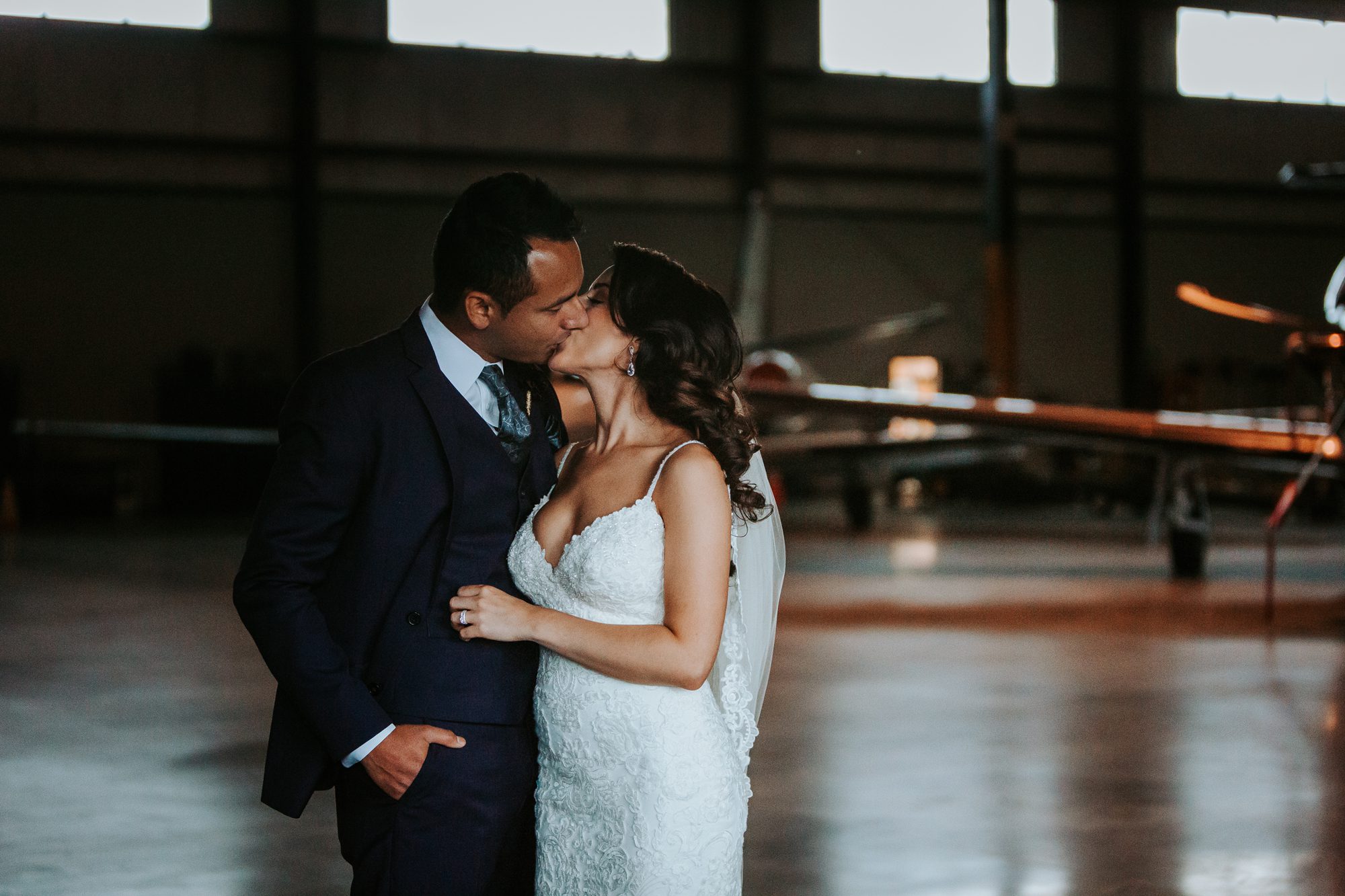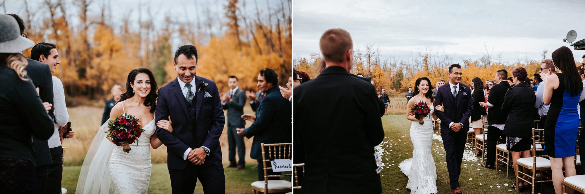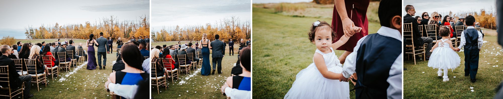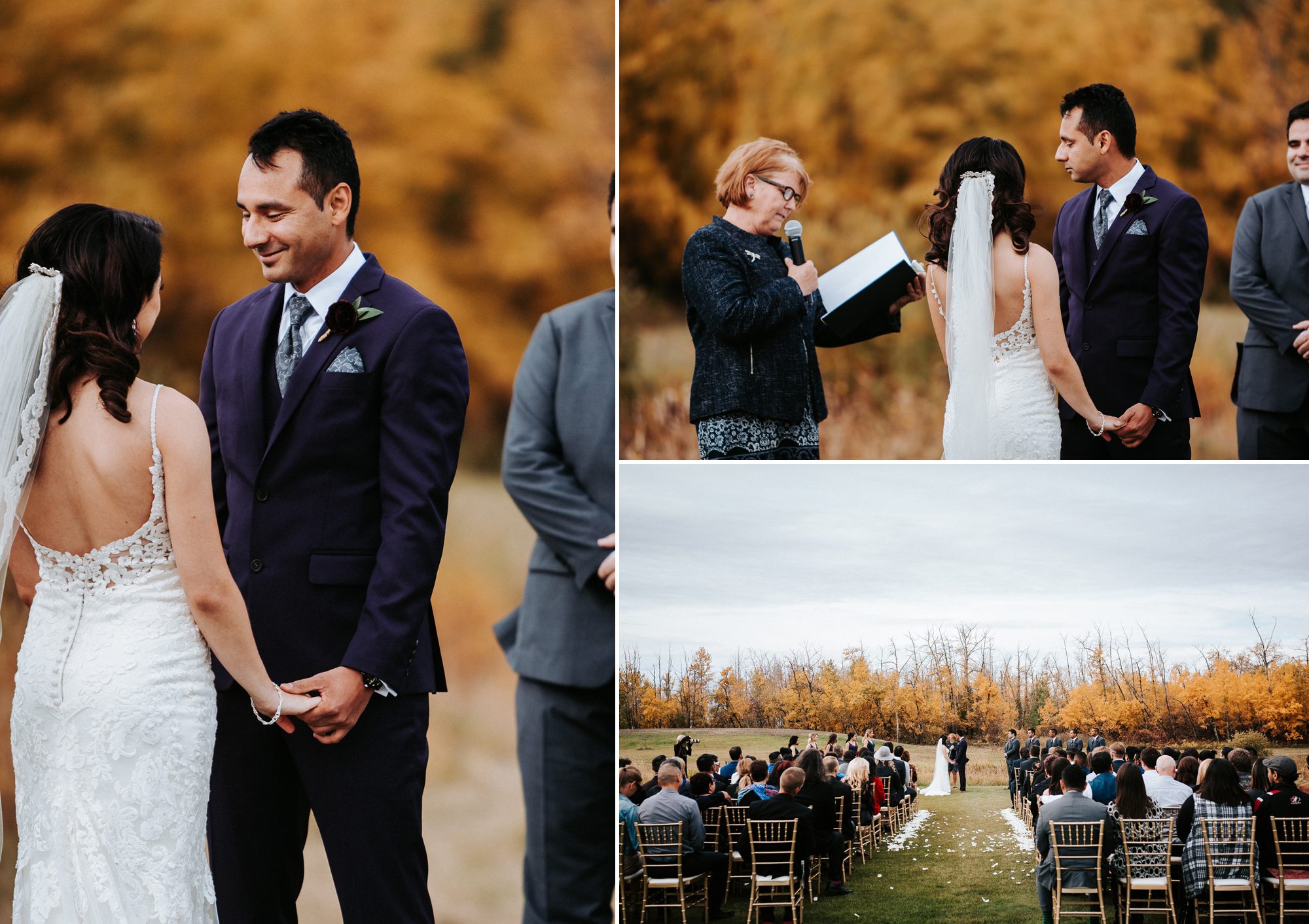 Alyx and Alex were married on September 30th, 2017 on a beautiful fall afternoon at RedTail Landing Golf Club, surrounded by their loved ones. After their ceremony and family photos we headed out to our first formals location inside an airplane hangar. We had to wait though, for the Oilers hockey team to take off before doing any photos. As soon as the groomsmen saw players from the hockey team pull in to board, I believe their days were made. The groom most of all was the most ecstatic, and I remember the bride saying “Nevermind us getting married, this will be the highlight of his life” lol! Once we finished at the hangar we headed to our second location with some beautiful fall colors and a view of the river. Their reception was also held at the RedTail Landing Gold Club. What a fantastic day!