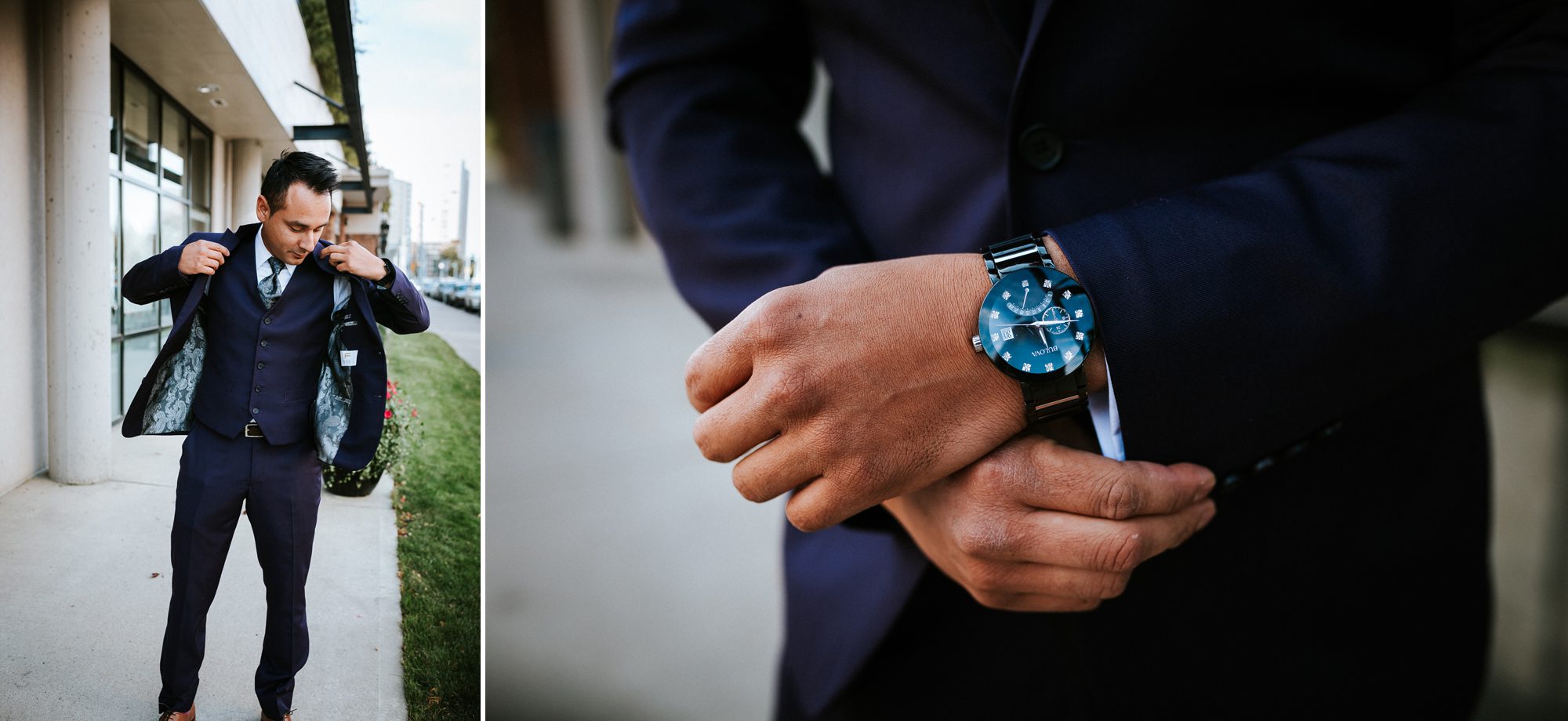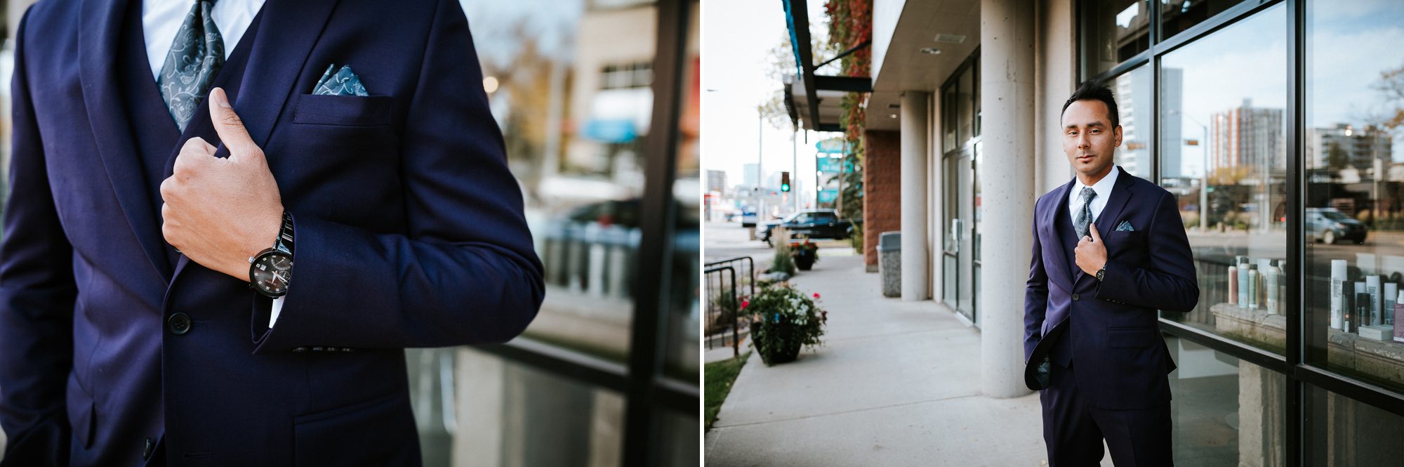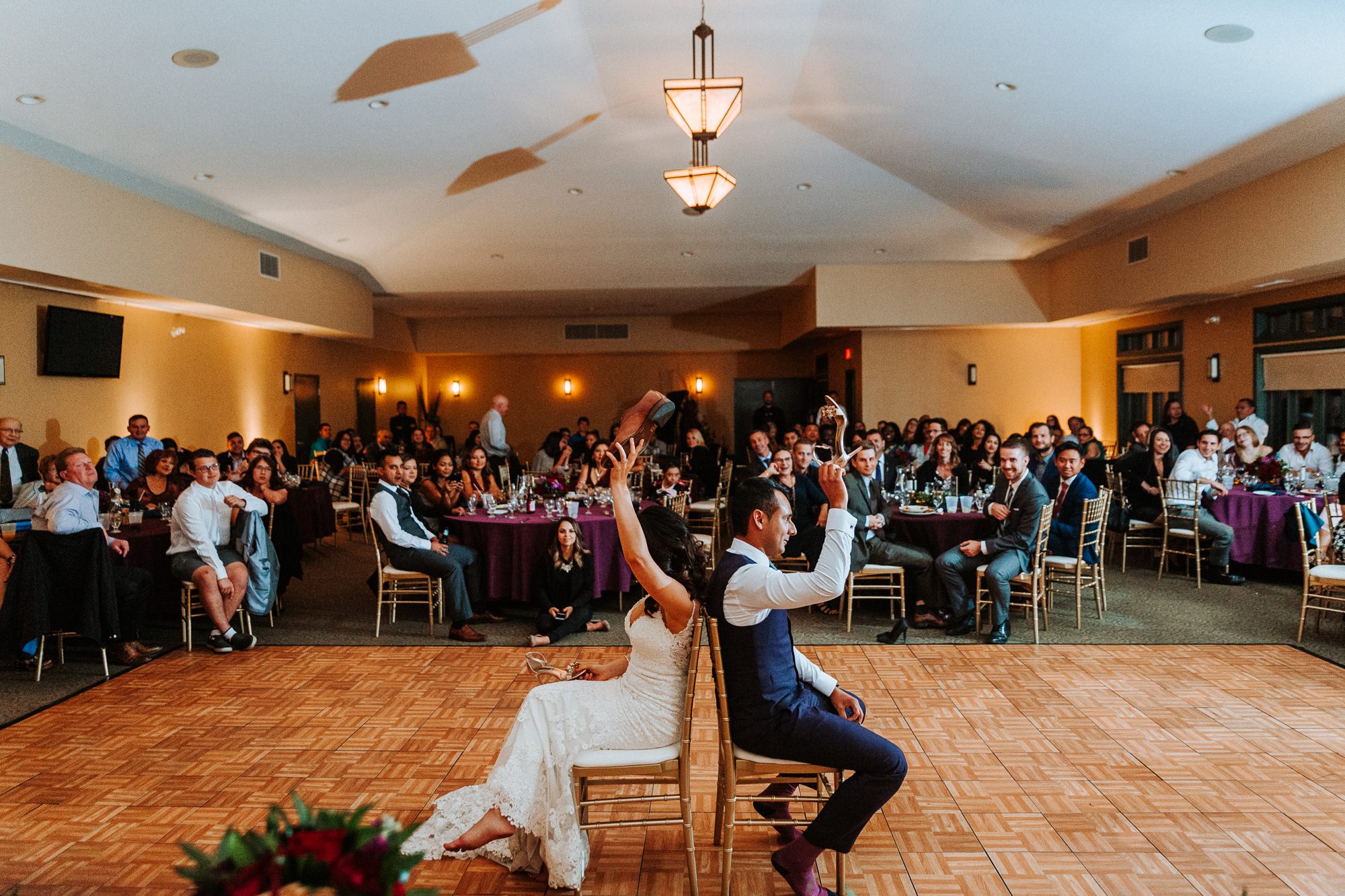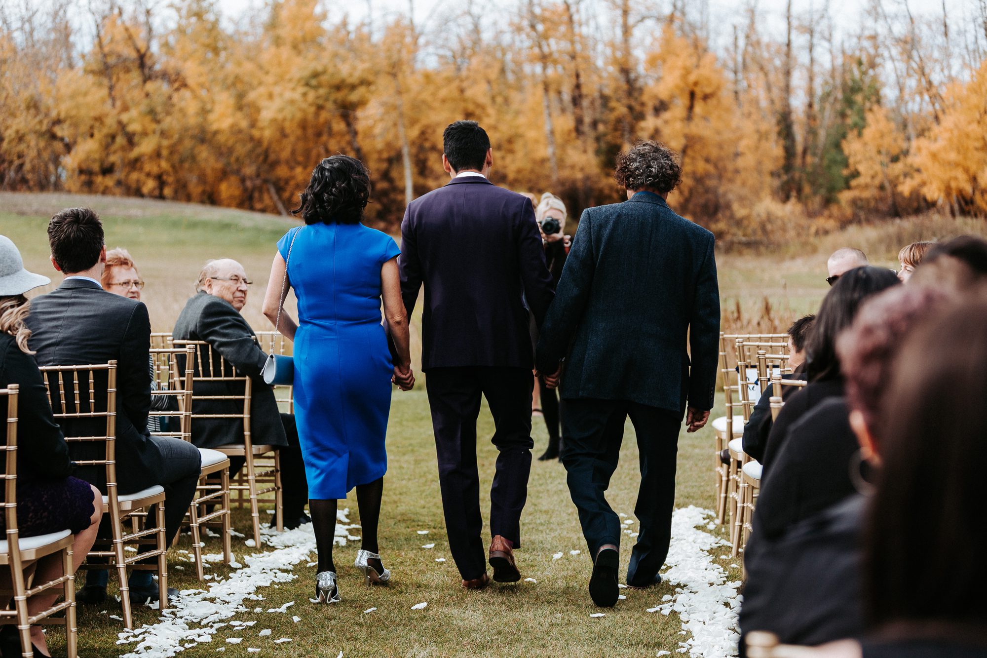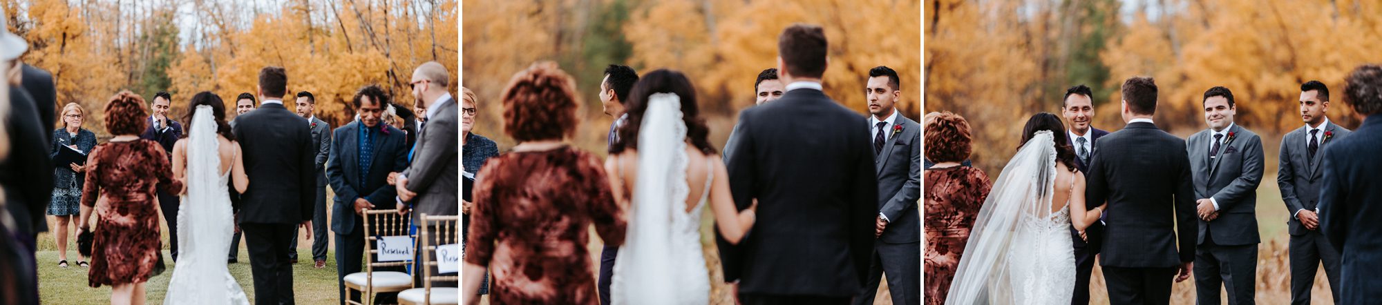 Alyx and Alex were married on September 30th, 2017 on a beautiful fall afternoon at RedTail Landing Golf Club, surrounded by their loved ones. After their ceremony and family photos we headed out to our first formals location inside an airplane hangar. We had to wait though, for the Oilers hockey team to take off before doing any photos. As soon as the groomsmen saw players from the hockey team pull in to board, I believe their days were made. The groom most of all was the most ecstatic, and I remember the bride saying “Nevermind us getting married, this will be the highlight of his life” lol! Once we finished at the hangar we headed to our second location with some beautiful fall colors and a view of the river. Their reception was also held at the RedTail Landing Gold Club. What a fantastic day!