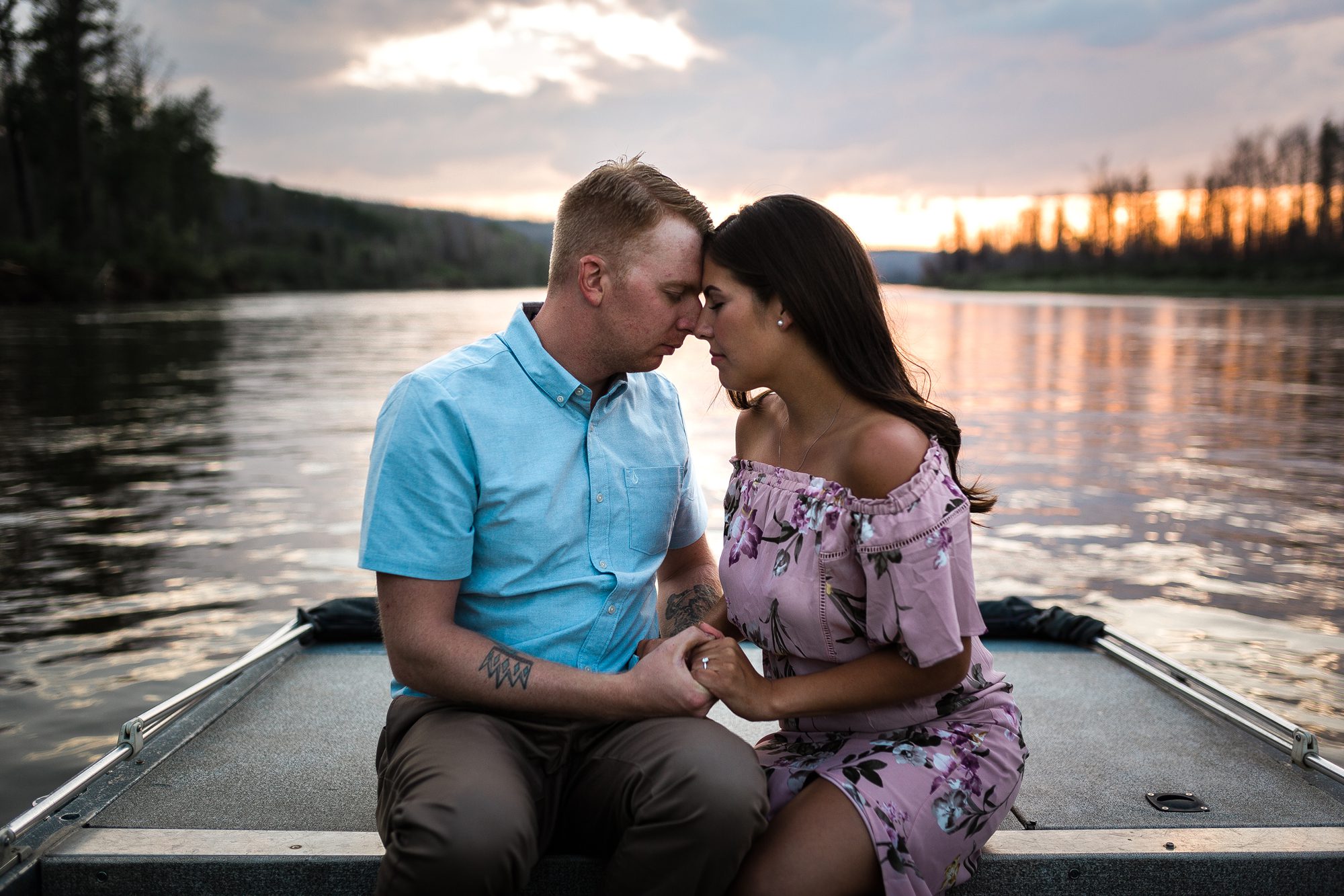 Ashlee and Jordan got engaged while fishing on the river in Fort McMurray, so when she mentioned doing some of the photos out in their boat I was so down for it. I am so stoked about these photos! The sunset was absolutely amazing, the clouds were so dynamic. All around an amazing experience! Being a born and raised Fort McMurray kid myself, I had actually never been out for a ride on the river before, so I’m really glad I got to experience that. After some photos at Lions Park we headed out to a boat launch in waterways. I’m so excited for their wedding in July! It’s going to be so fun!
