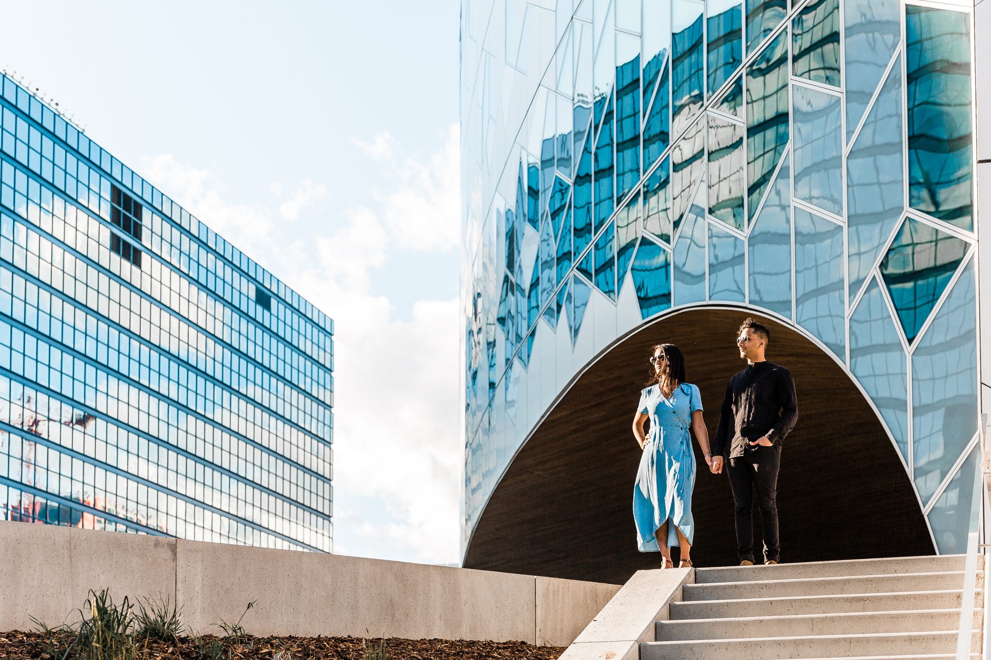 I’m so excited for Iman and Jamil’s wedding day! They are such a fun couple to be around, it’s so refreshing! They just give off this energy where you feel so happy after being with them. I can only imagine how awesome their wedding will be! For their engagement shoot, I ended up being in Calgary to photograph a wedding, and was able to do their engagement session while being in town. We met at the Calgary Library, and then headed to a couple other locations. Hope you love the photos!