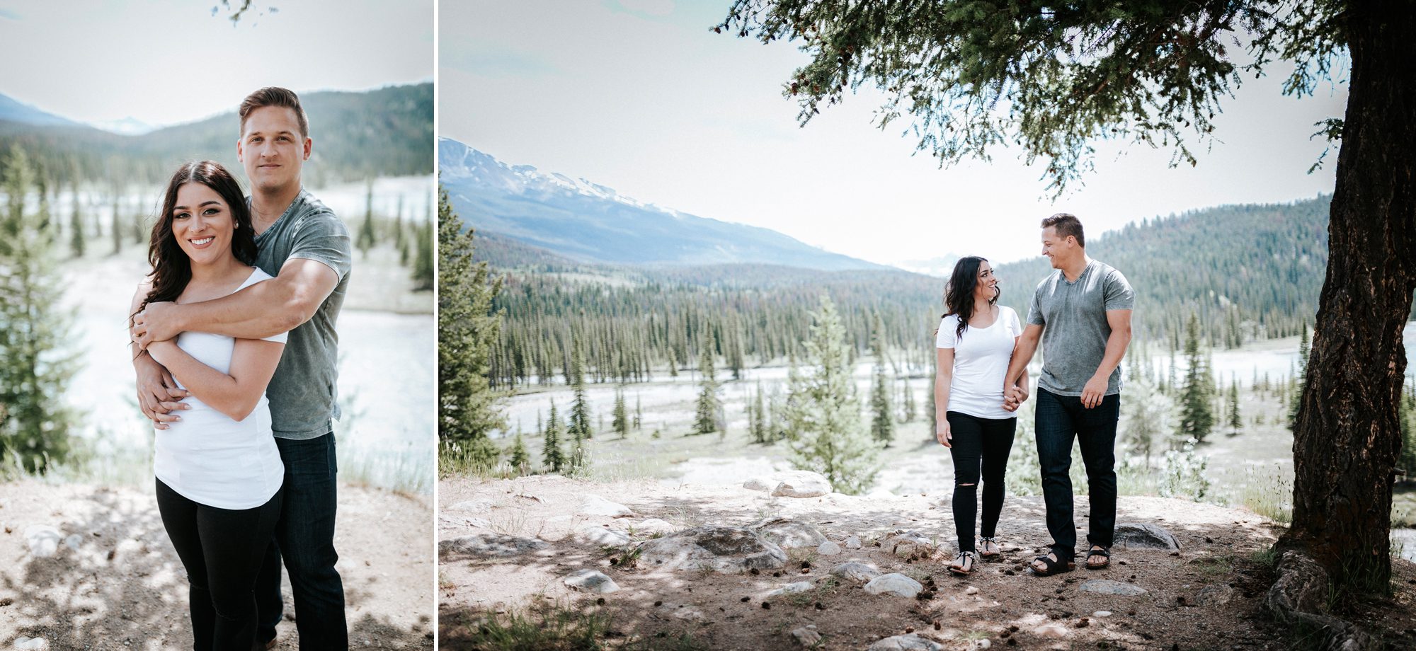 I remember when I first met with Rafaela and Brad one night last year, and thinking man what a great couple! They talked about liking my style and saying they like the darker photo look and just everything they mentioned I was checking off in a list in my head. A list of an ideal client for me to have. As they told me about their wedding I couldn’t help but get excited. You know when you’re talking to someone and they just get it? Yeah, this was one of those times! Once we talked about their engagement session I immediately started hunting down some locations to photograph at in Jasper.