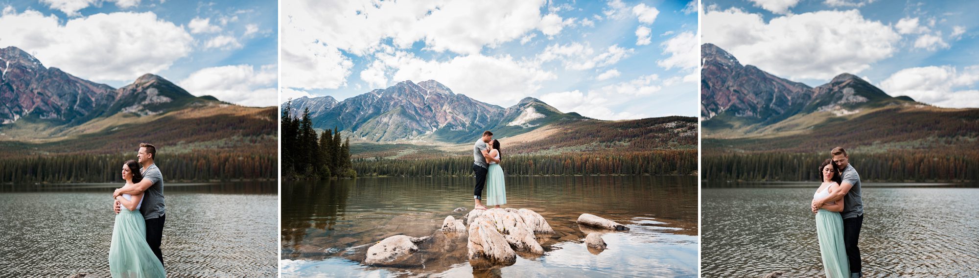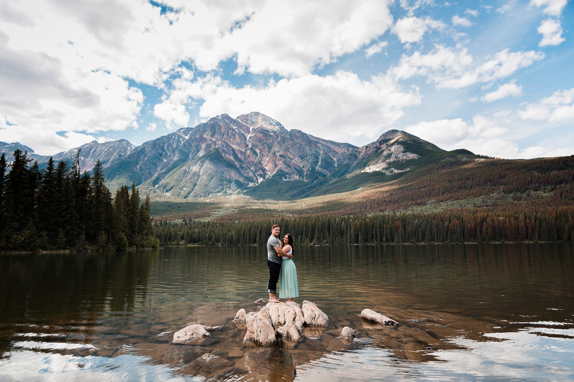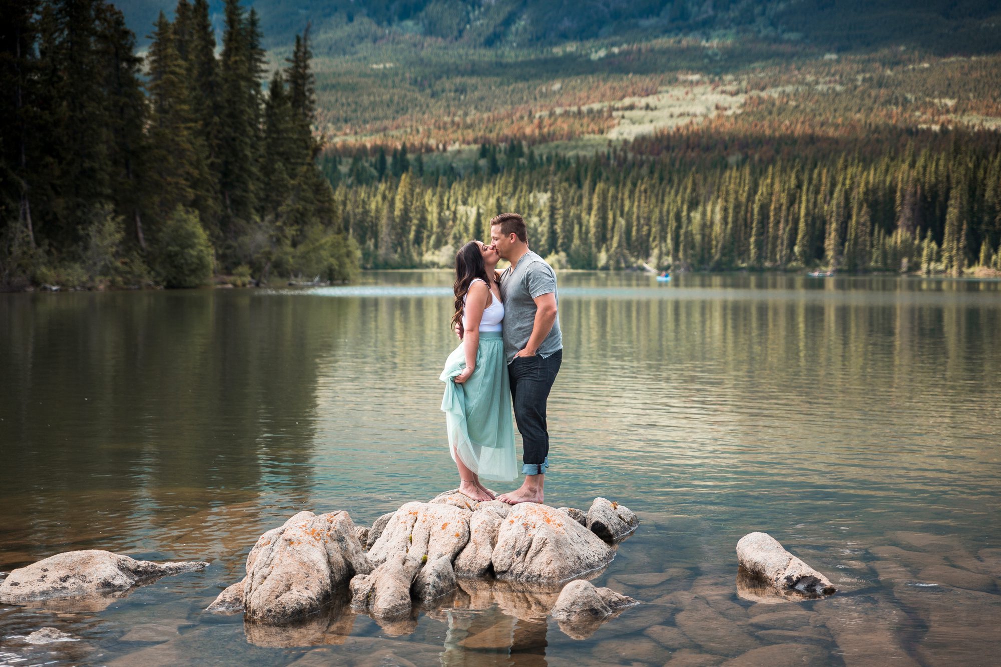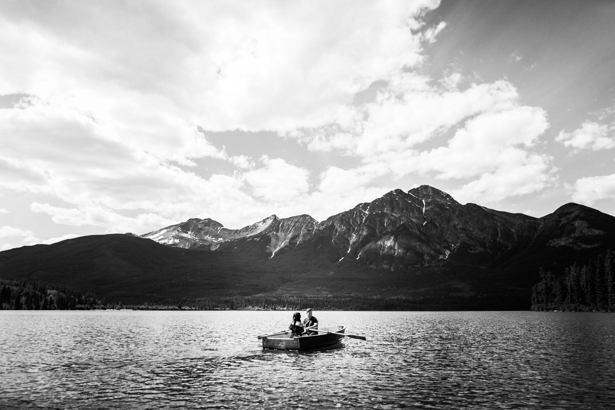 After our session in Tekkara Lodge, we had lunch, and then headed over to Pyramid lake for some paddle boating. Over the years when I’m inspired by other photographers and when I get an idea in my head, I write those ideas down on my photo bucket list. A photo of a couple in a canoe or boat shot from above was one of them, and I’m so excited to have been able to scratch that off the list! Once we finished with the paddle boat we took some photos next to the island on pyramid lake, and then headed home to Edmonton.