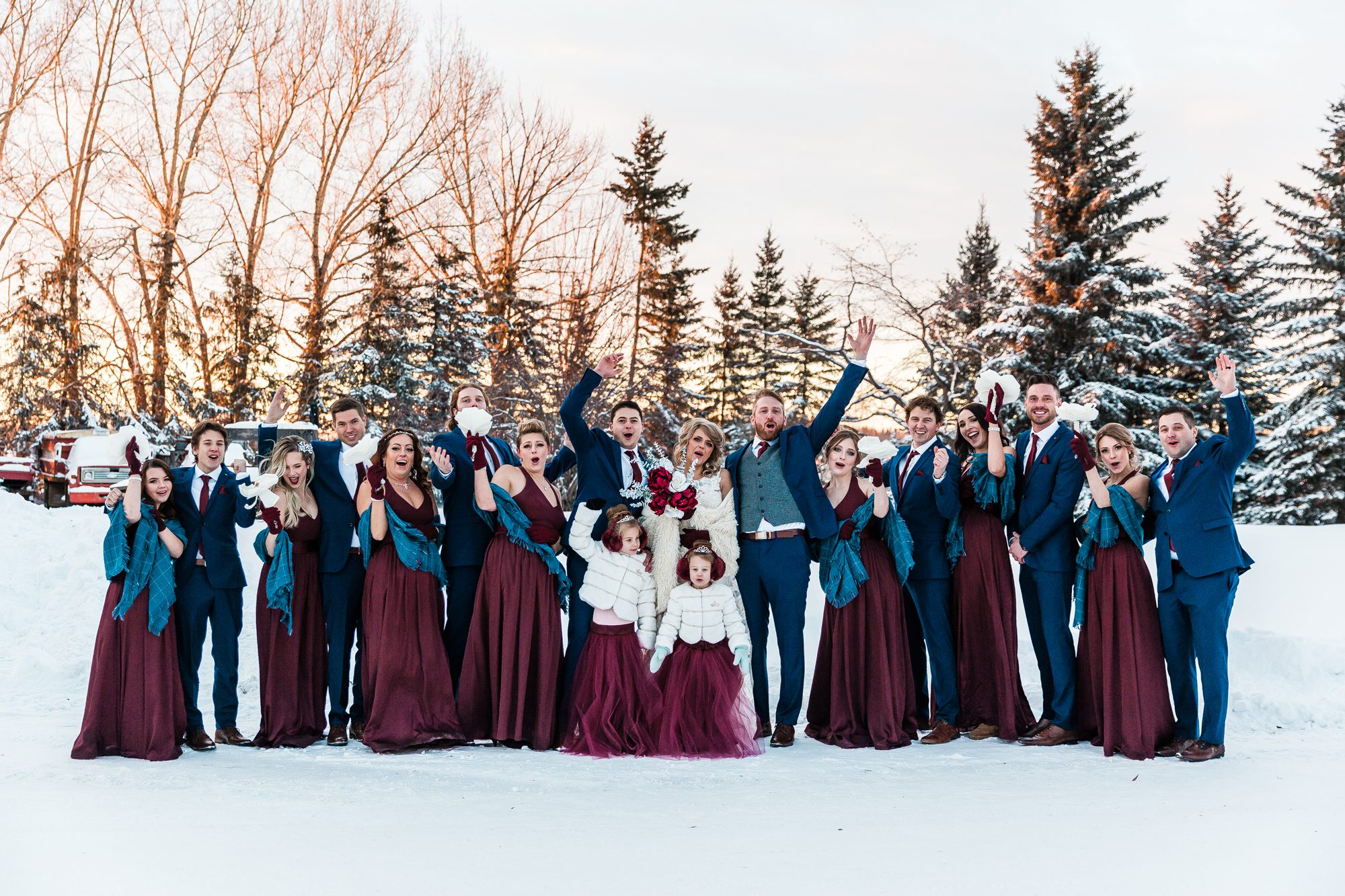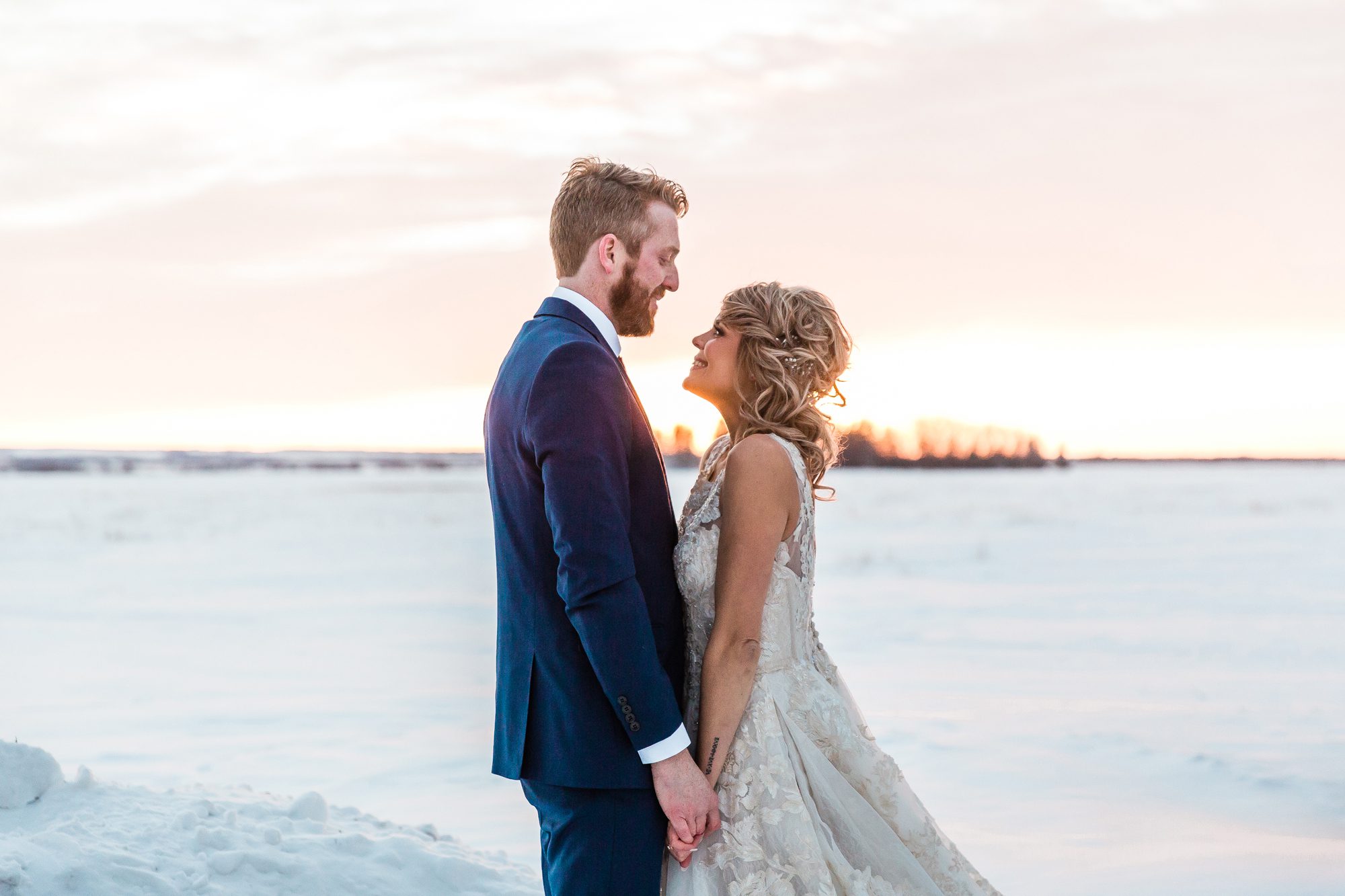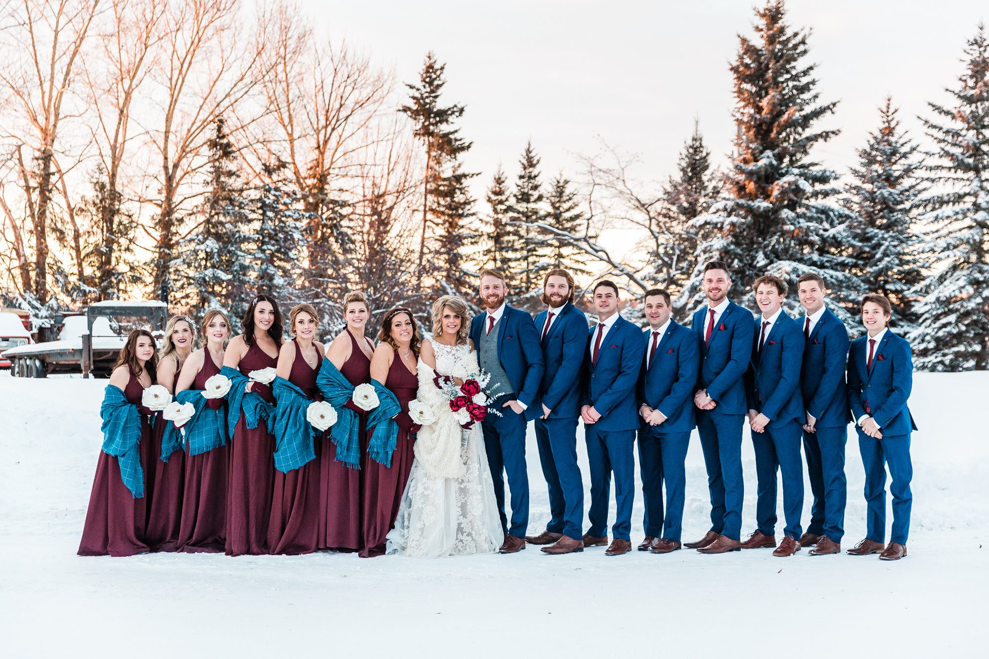 I had such a great time photographing Megan and Dylan’s wedding! I met with Megan a couple weeks before their 2018 NYE wedding, she was (and is) so kind! She told me their story, was super open and I appreciate that so much. It made me feel that much more connected to their wedding day, and to the excitement of finally tying the knot. It was a cold cold day, at -19°C, with 22km/hour frigid cold air wind. Their group and family were troopers during their photos outside! Alberta is always in extreme cold warnings end of year and in January, the previous NYE being -38°C! It was actually my first time visiting and shooting in Lamont, their church was so beautiful! And it was where their parents had also gotten married. It was so cool and such a blessing to be a part of their wedding day, cheers to Megan and Dylan!