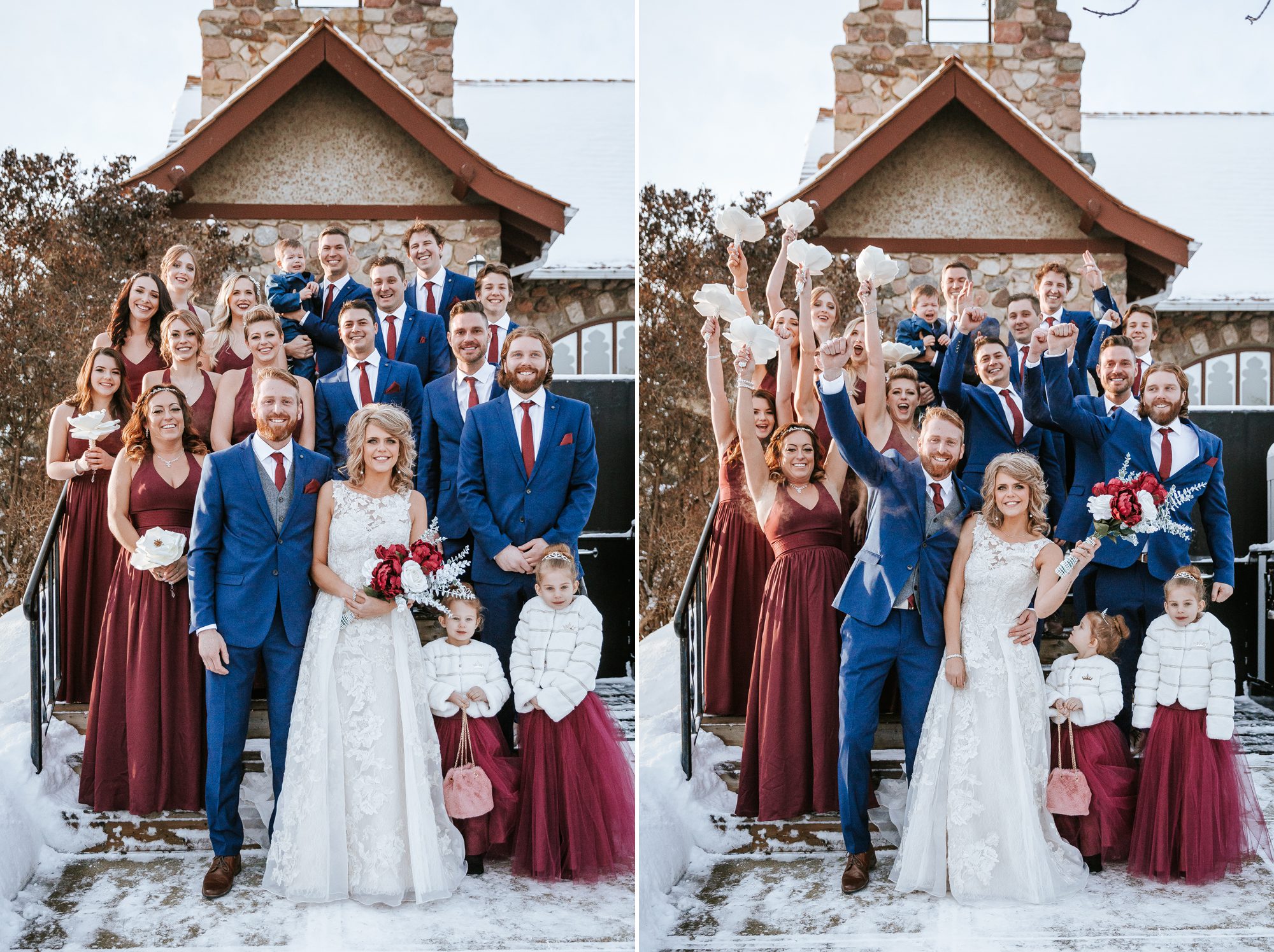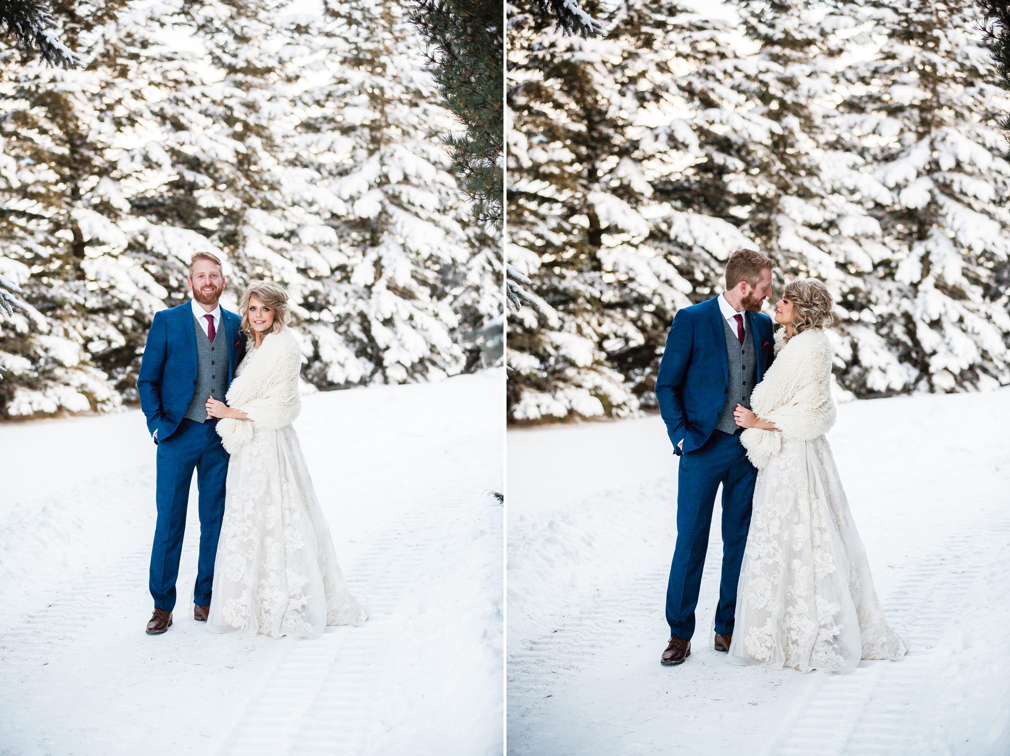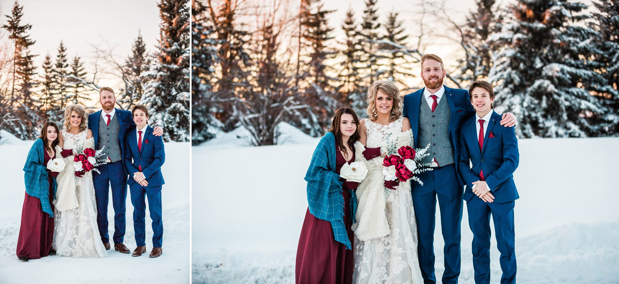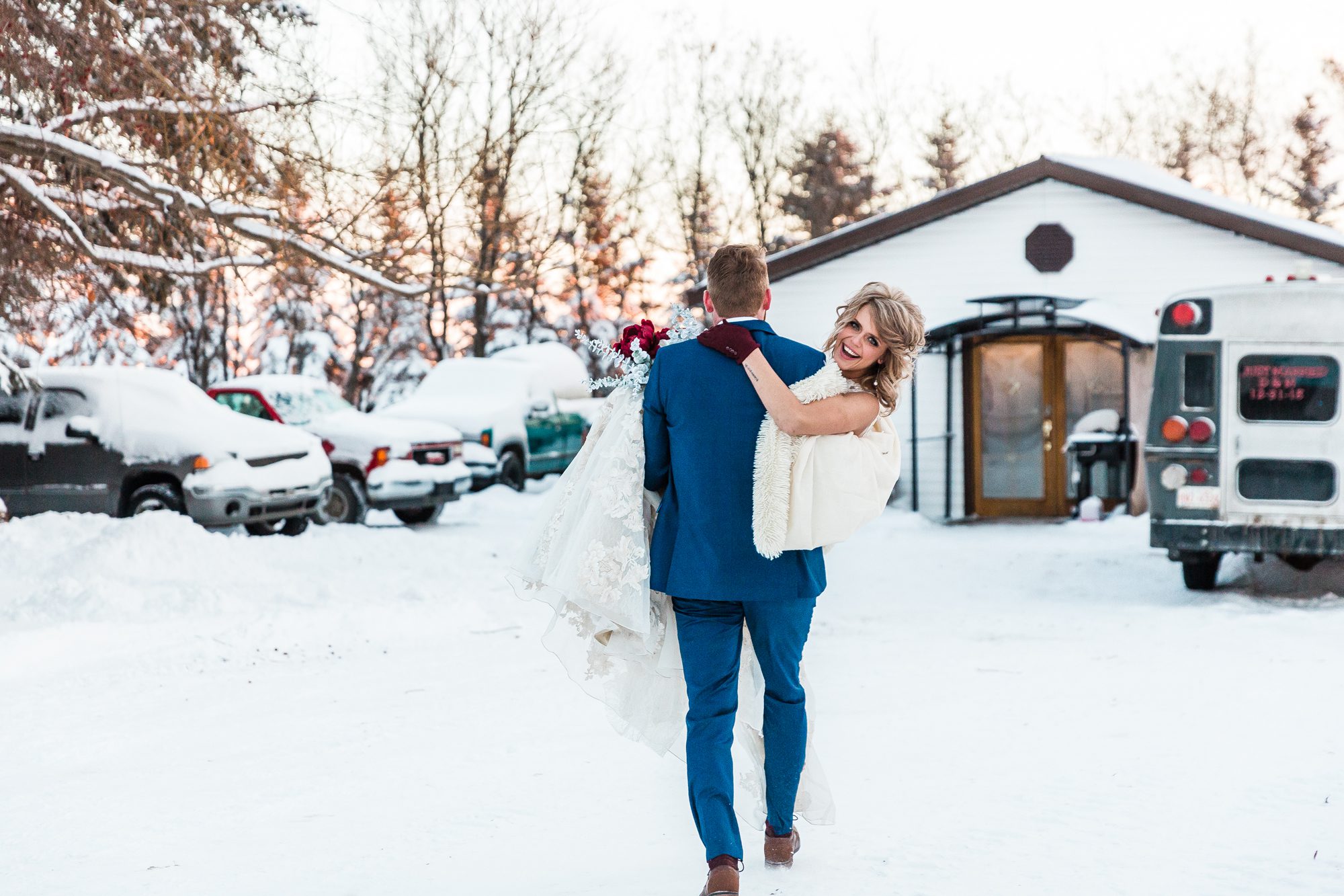 I had such a great time photographing Megan and Dylan’s wedding! I met with Megan a couple weeks before their 2018 NYE wedding, she was (and is) so kind! She told me their story, was super open and I appreciate that so much. It made me feel that much more connected to their wedding day, and to the excitement of finally tying the knot. It was a cold cold day, at -19°C, with 22km/hour frigid cold air wind. Their group and family were troopers during their photos outside! Alberta is always in extreme cold warnings end of year and in January, the previous NYE being -38°C! It was actually my first time visiting and shooting in Lamont, their church was so beautiful! And it was where their parents had also gotten married. It was so cool and such a blessing to be a part of their wedding day, cheers to Megan and Dylan!