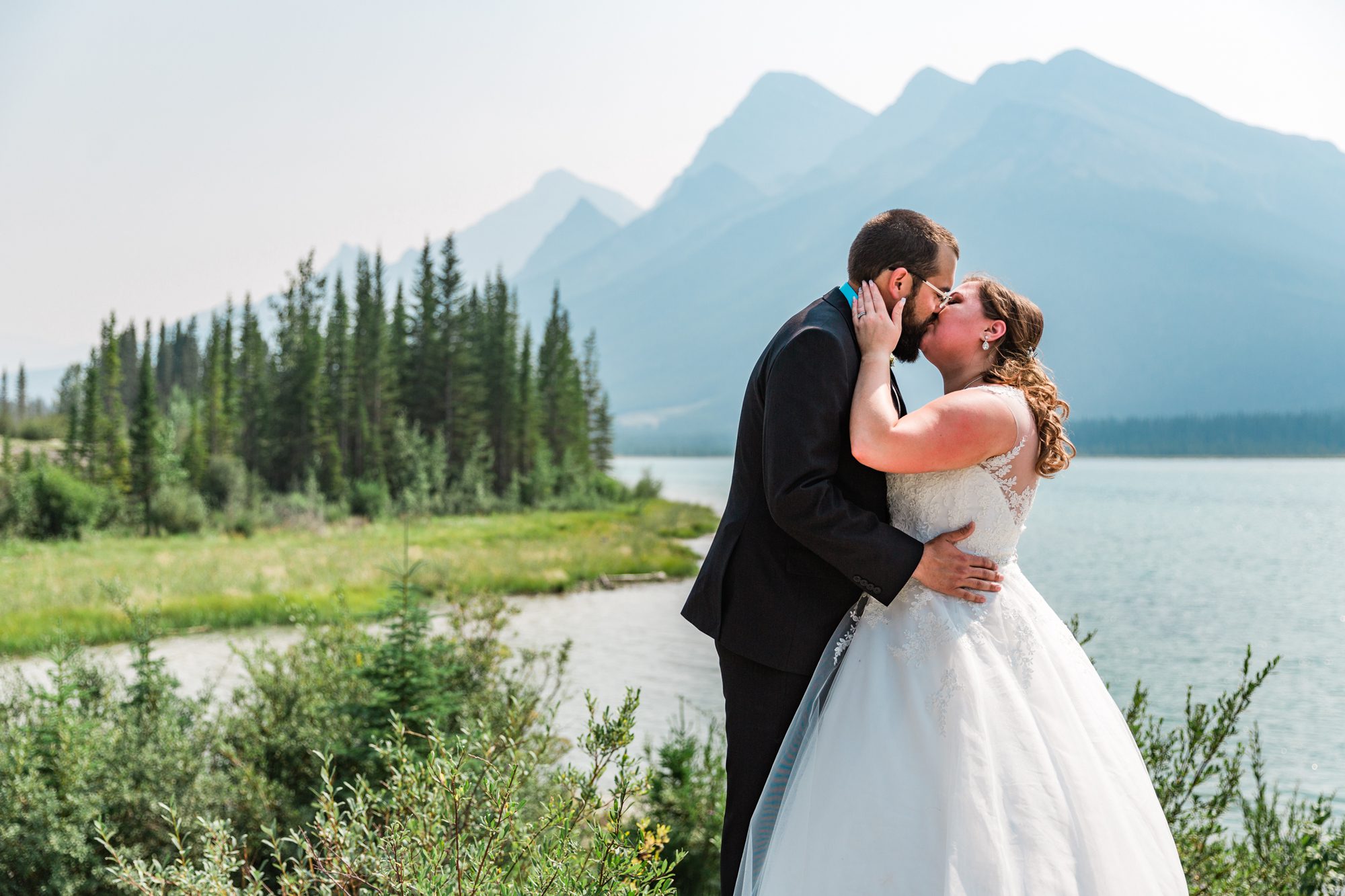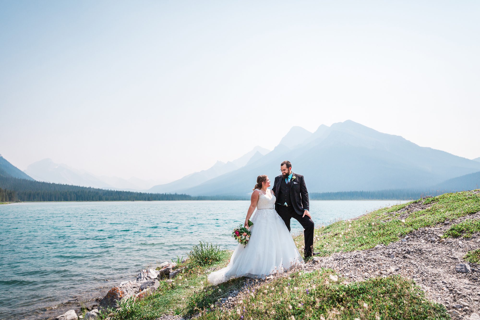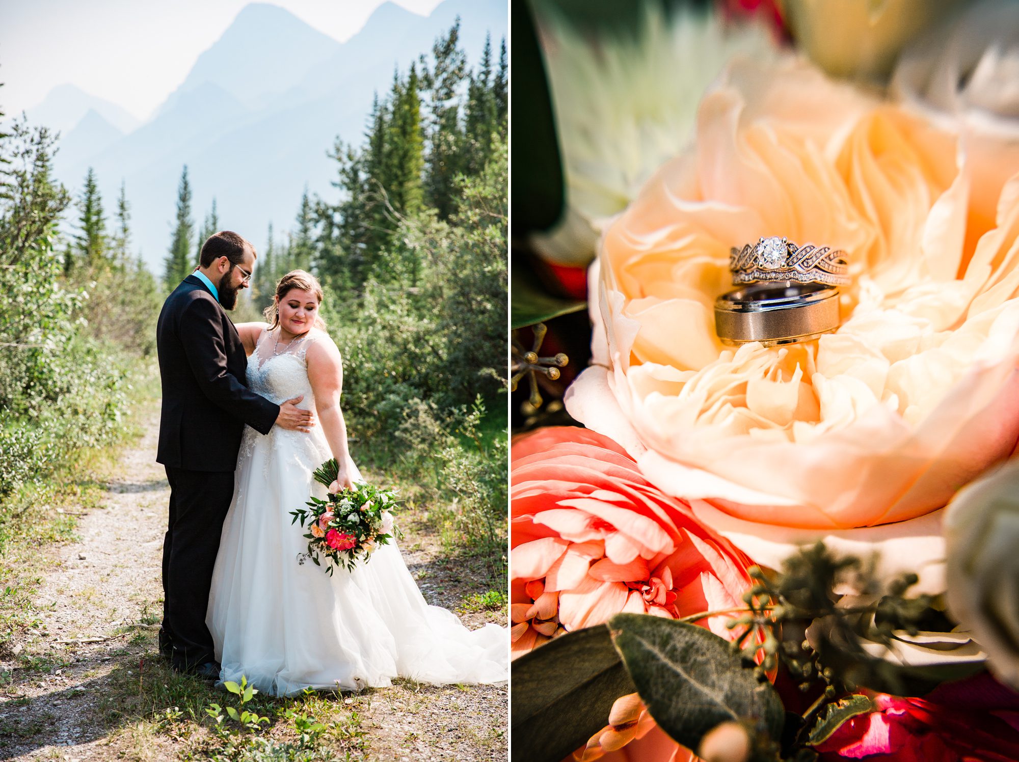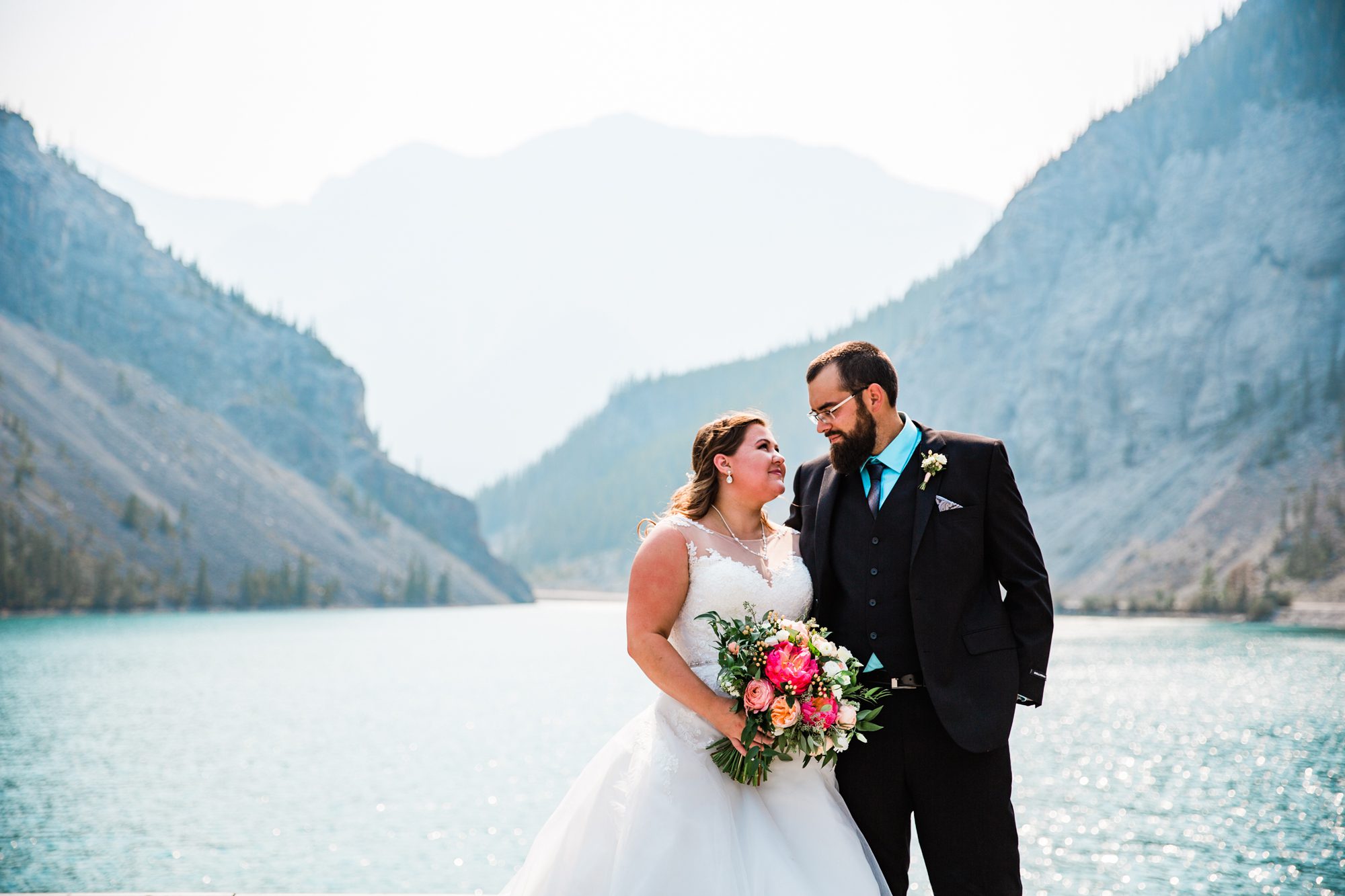 I’ve known Rachelle for many, many years. Like over 12 years! Probably more. So it was really such an honor to have photographed her intimate wedding in Canmore. Garrett and Rachelle were married in front of their close friends and family in Rundleview Park in Canmore Alberta. It was one of the hottest (if not the hottest) day of the year. I think my vehicle was registering between 36.5-37 Degrees Celsius by the time we started the ceremony. It was also pretty smoky due to the fires burning in BC this summer, but Rachelle and Garrett took these circumstances with stride. I was happy we could see the mountains, and that it wasn’t as bad as we had all originally thought it would be. After their ceremony and some family photos, we headed to the first formals location just south west of Canmore, then to Whitemans Pond, and then to the Engine Bridge. It was such a good day! I’m so excited for the future of Rachelle and Garrett, I wish them nothing but the best in their new life together.