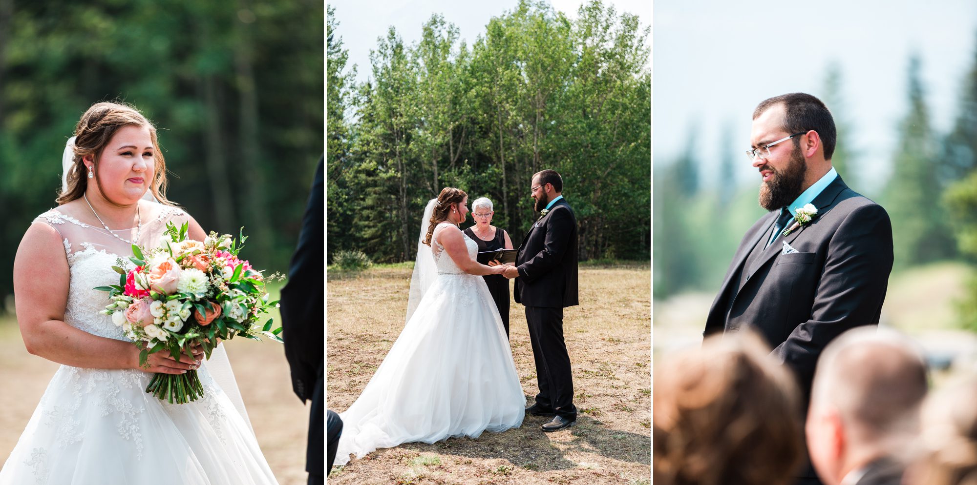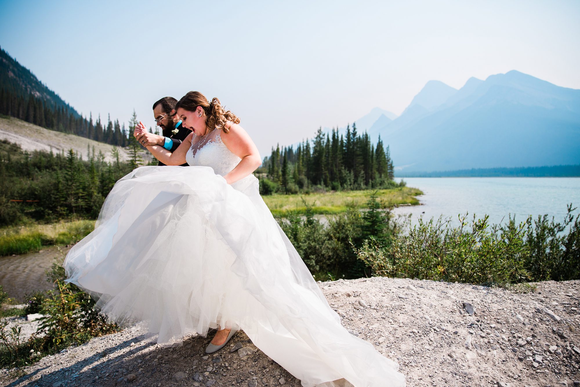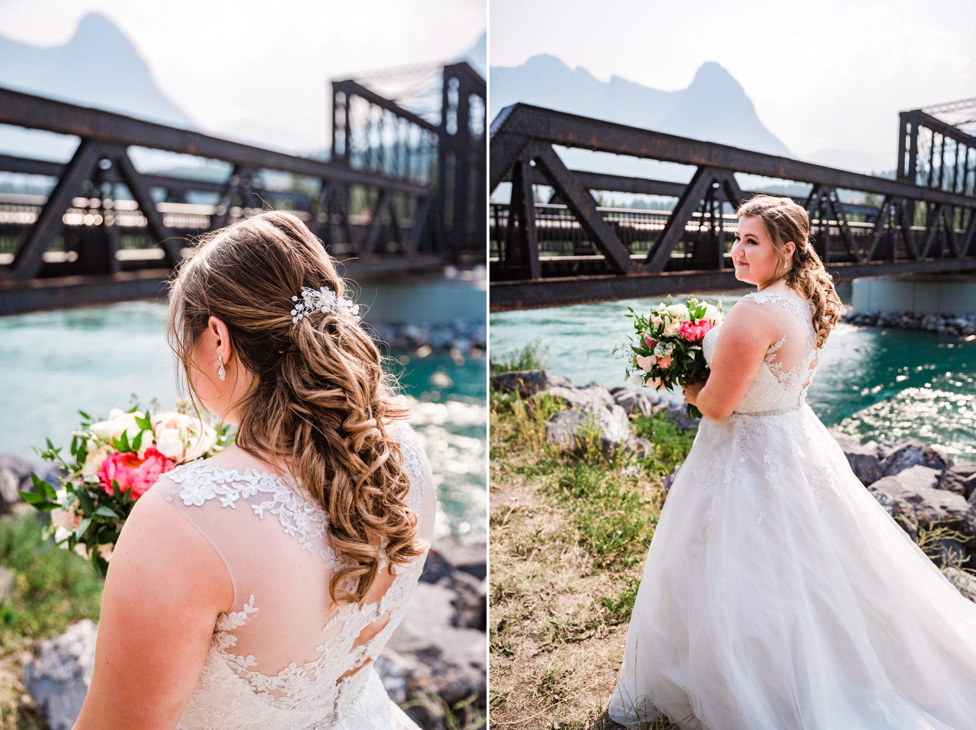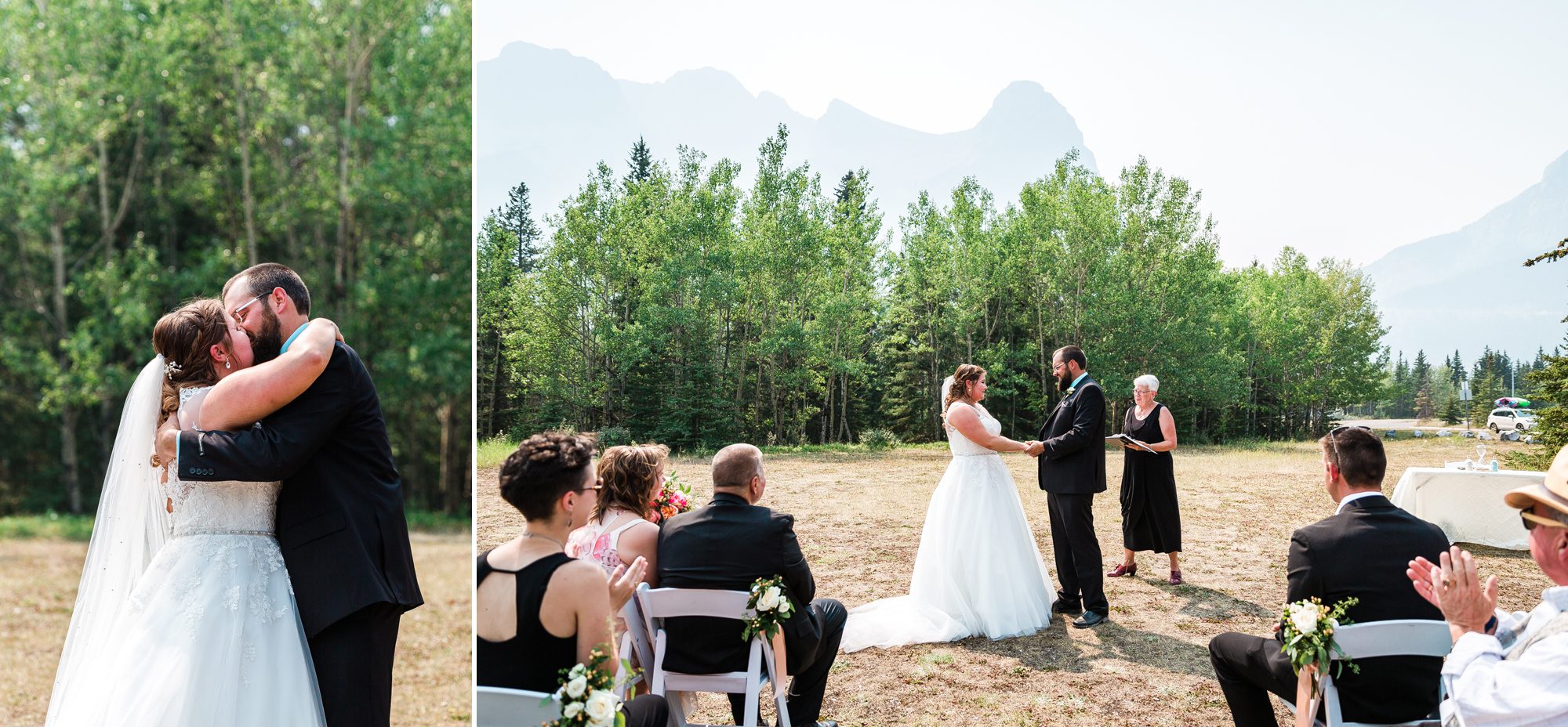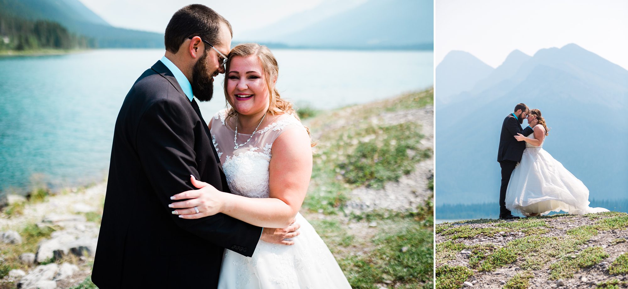 I’ve known Rachelle for many, many years. Like over 12 years! Probably more. So it was really such an honor to have photographed her intimate wedding in Canmore. Garrett and Rachelle were married in front of their close friends and family in Rundleview Park in Canmore Alberta. It was one of the hottest (if not the hottest) day of the year. I think my vehicle was registering between 36.5-37 Degrees Celsius by the time we started the ceremony. It was also pretty smoky due to the fires burning in BC this summer, but Rachelle and Garrett took these circumstances with stride. I was happy we could see the mountains, and that it wasn’t as bad as we had all originally thought it would be. After their ceremony and some family photos, we headed to the first formals location just south west of Canmore, then to Whitemans Pond, and then to the Engine Bridge. It was such a good day! I’m so excited for the future of Rachelle and Garrett, I wish them nothing but the best in their new life together.