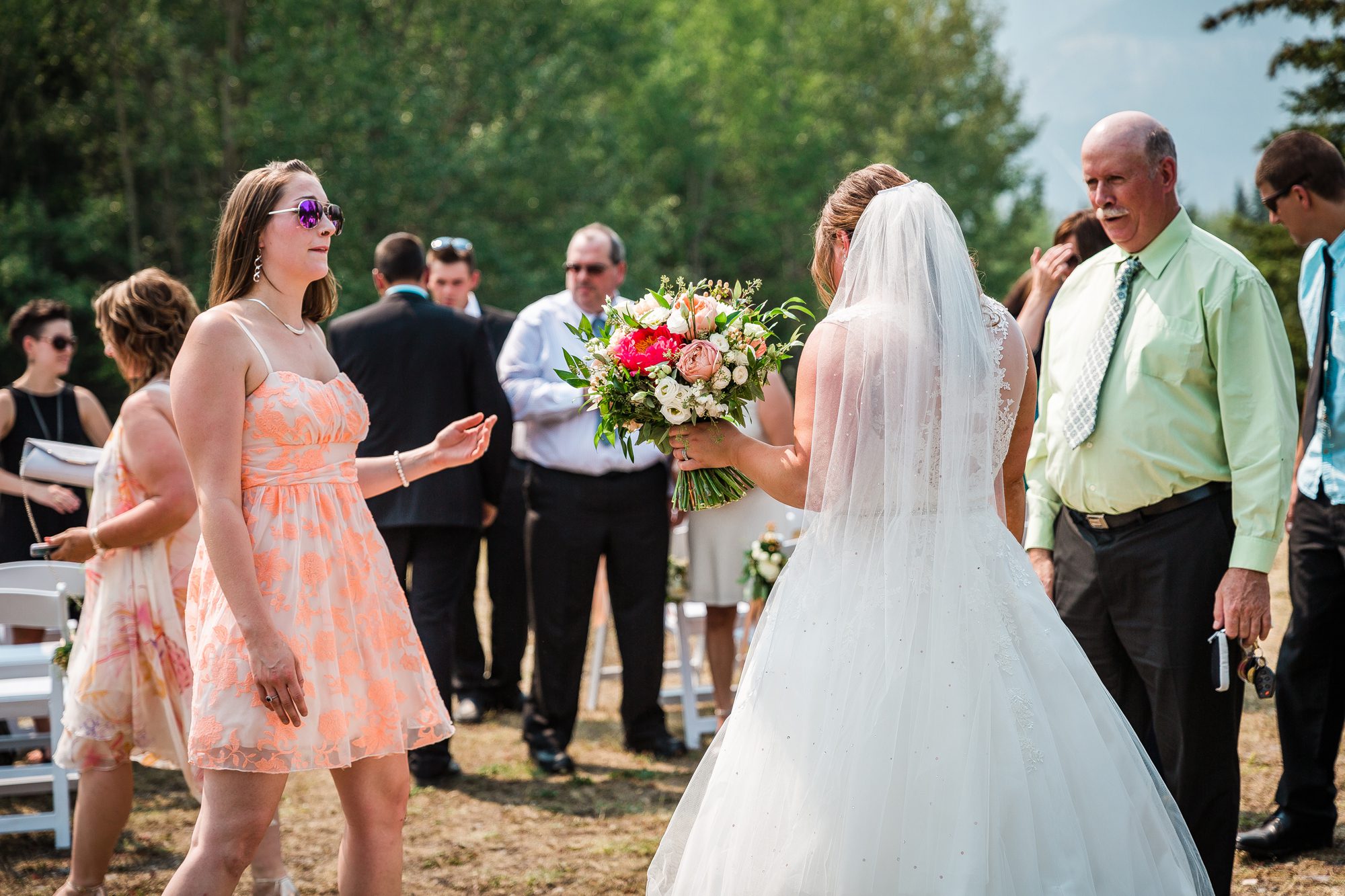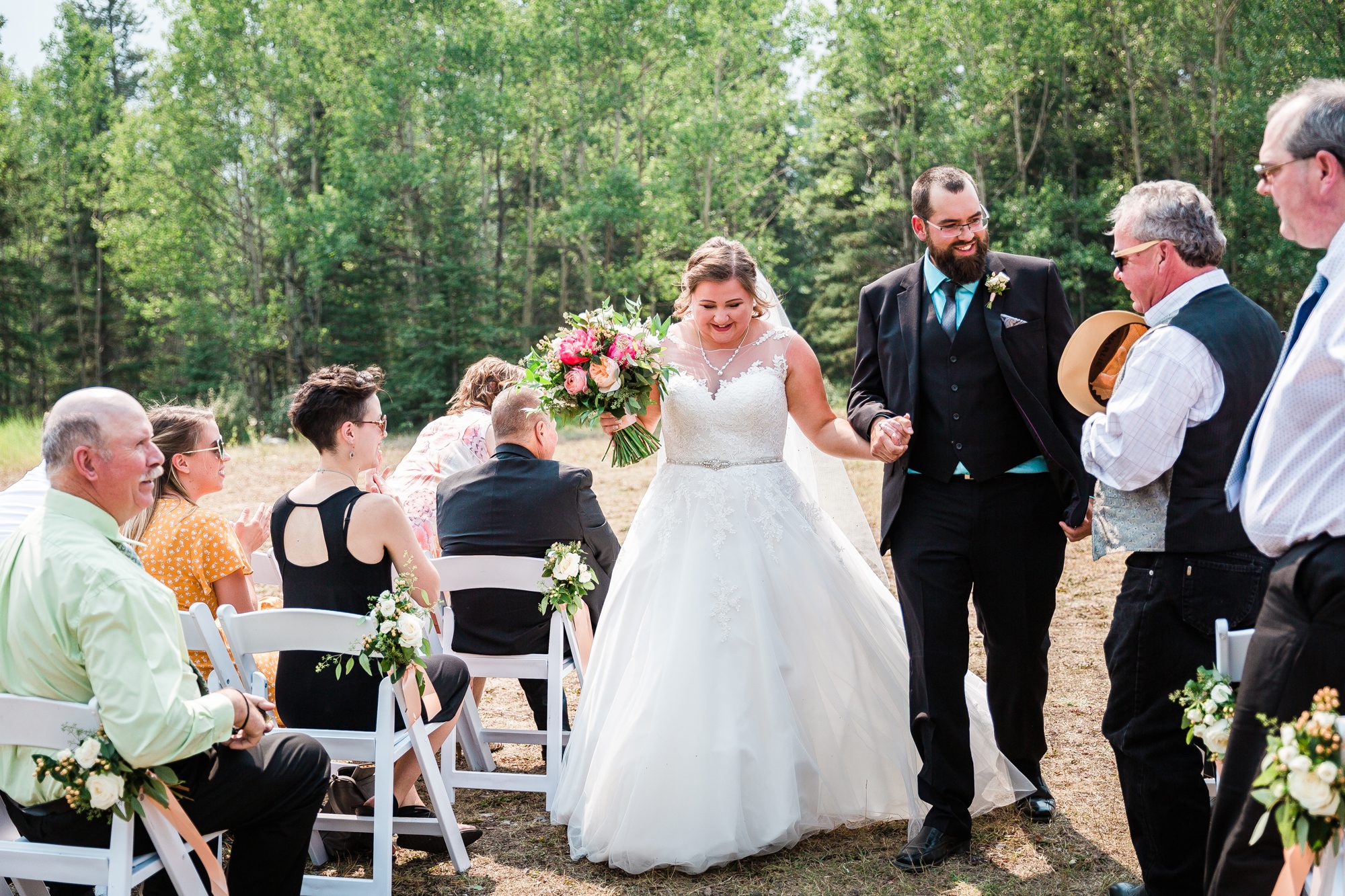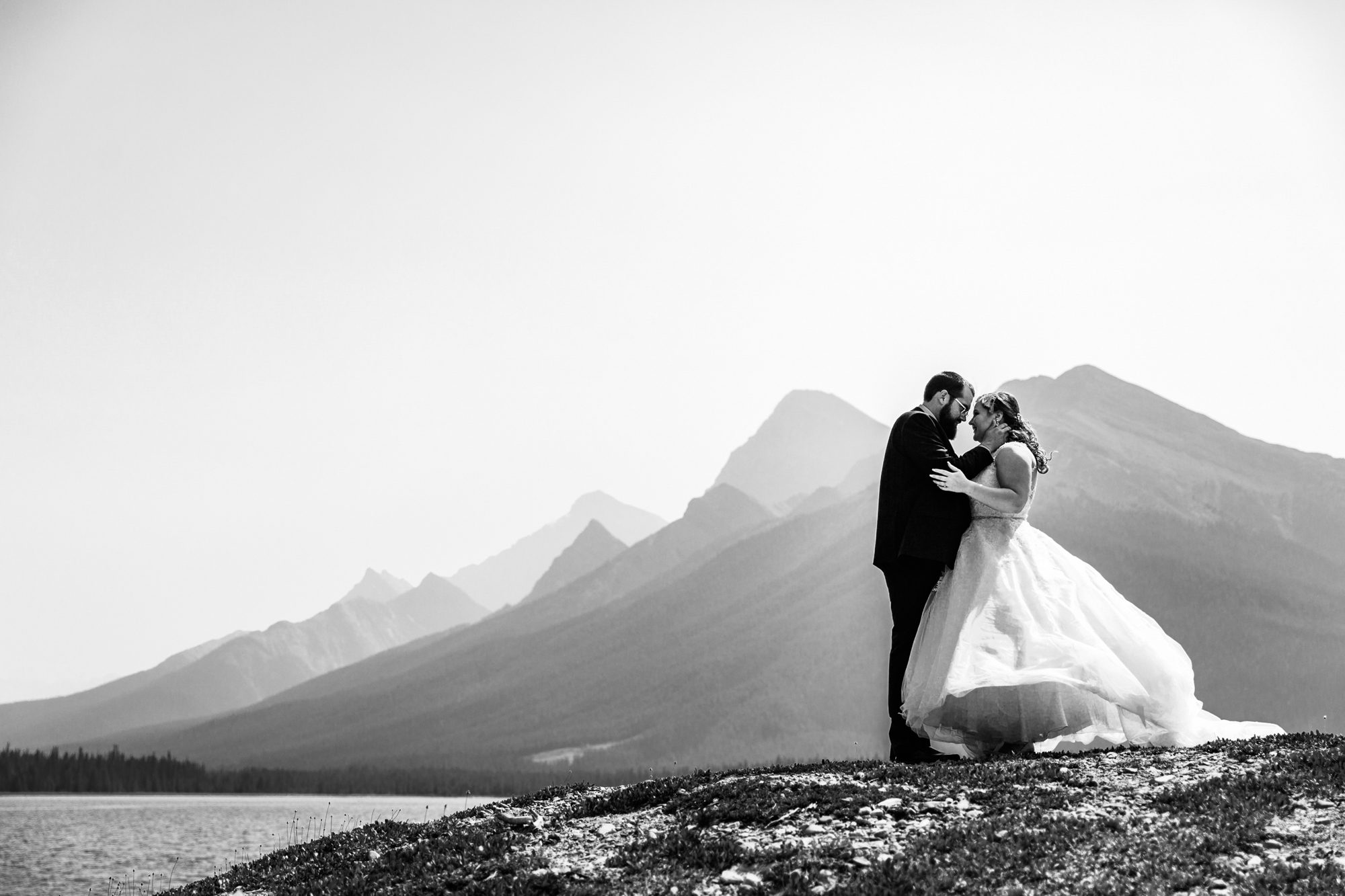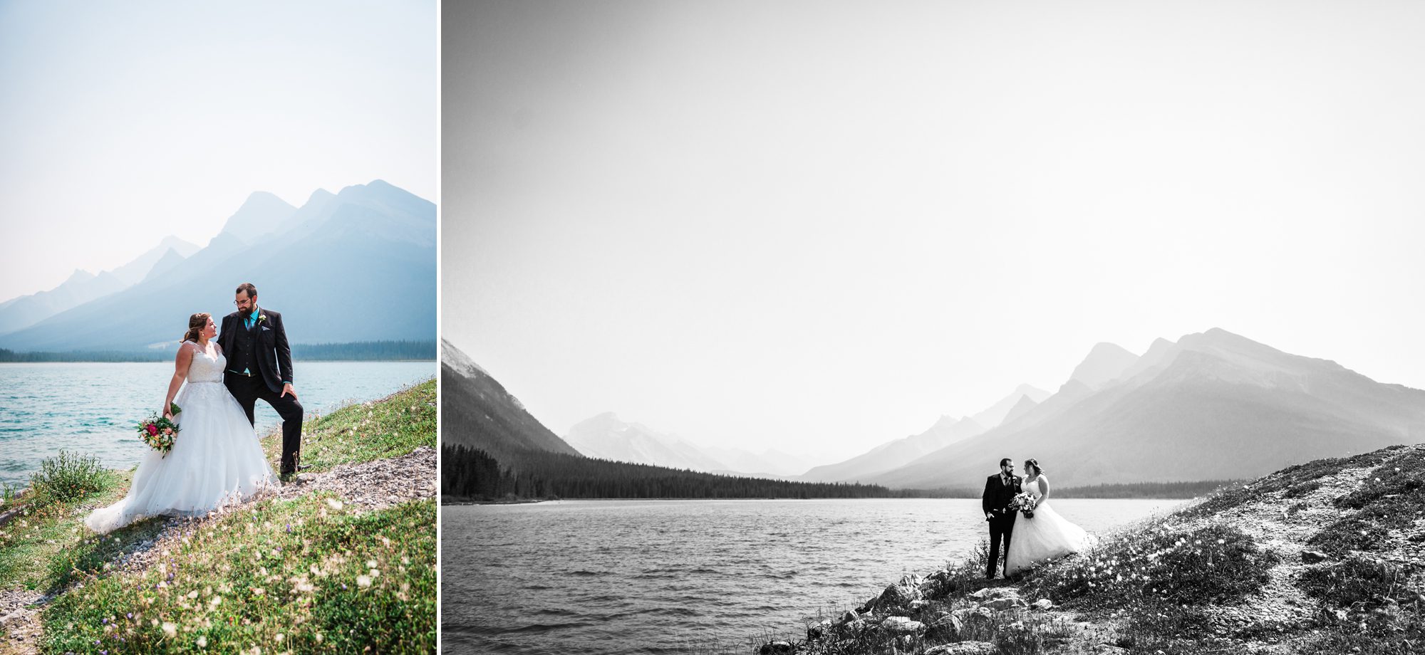 I’ve known Rachelle for many, many years. Like over 12 years! Probably more. So it was really such an honor to have photographed her intimate wedding in Canmore. Garrett and Rachelle were married in front of their close friends and family in Rundleview Park in Canmore Alberta. It was one of the hottest (if not the hottest) day of the year. I think my vehicle was registering between 36.5-37 Degrees Celsius by the time we started the ceremony. It was also pretty smoky due to the fires burning in BC this summer, but Rachelle and Garrett took these circumstances with stride. I was happy we could see the mountains, and that it wasn’t as bad as we had all originally thought it would be. After their ceremony and some family photos, we headed to the first formals location just south west of Canmore, then to Whitemans Pond, and then to the Engine Bridge. It was such a good day! I’m so excited for the future of Rachelle and Garrett, I wish them nothing but the best in their new life together.