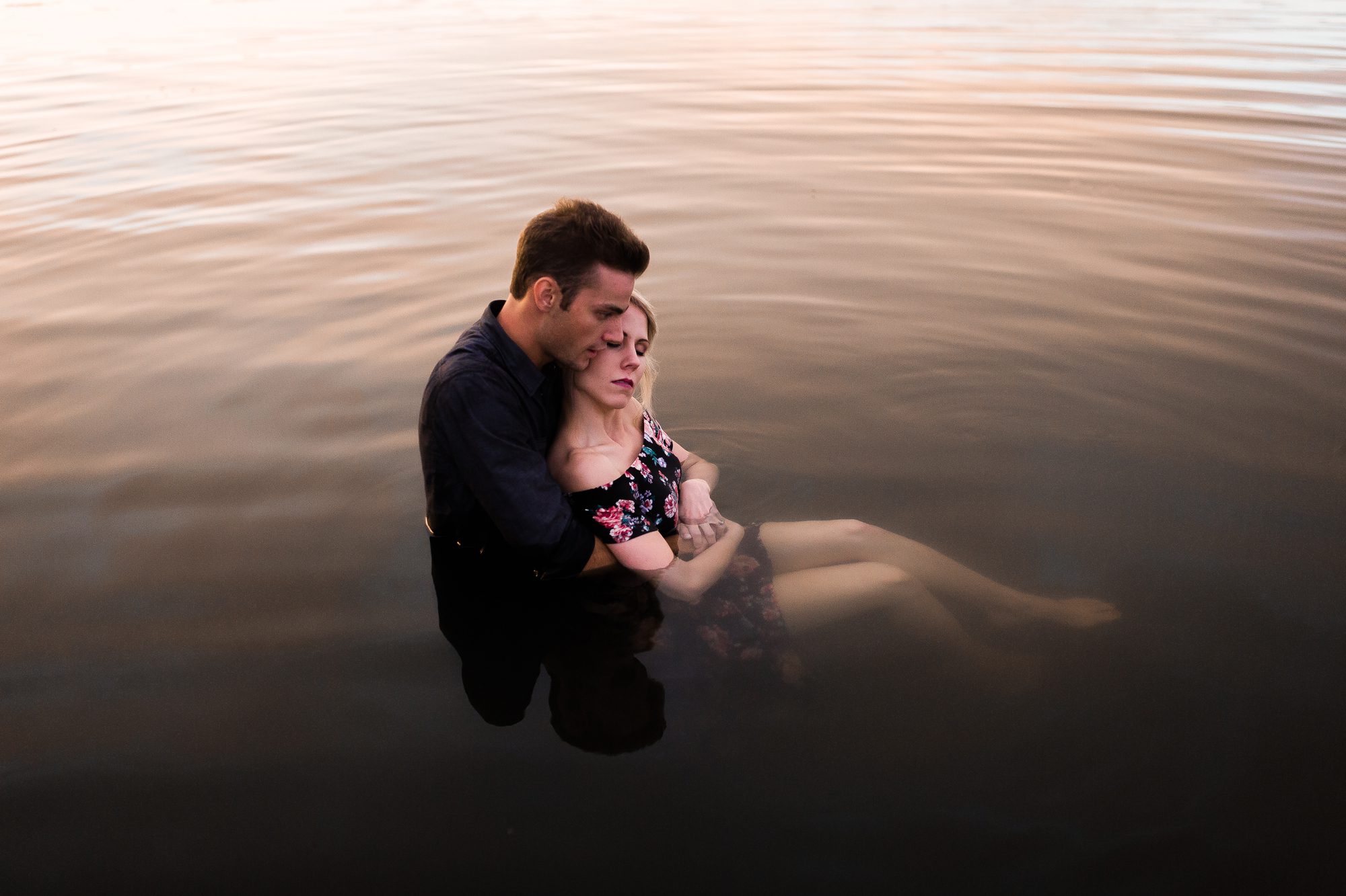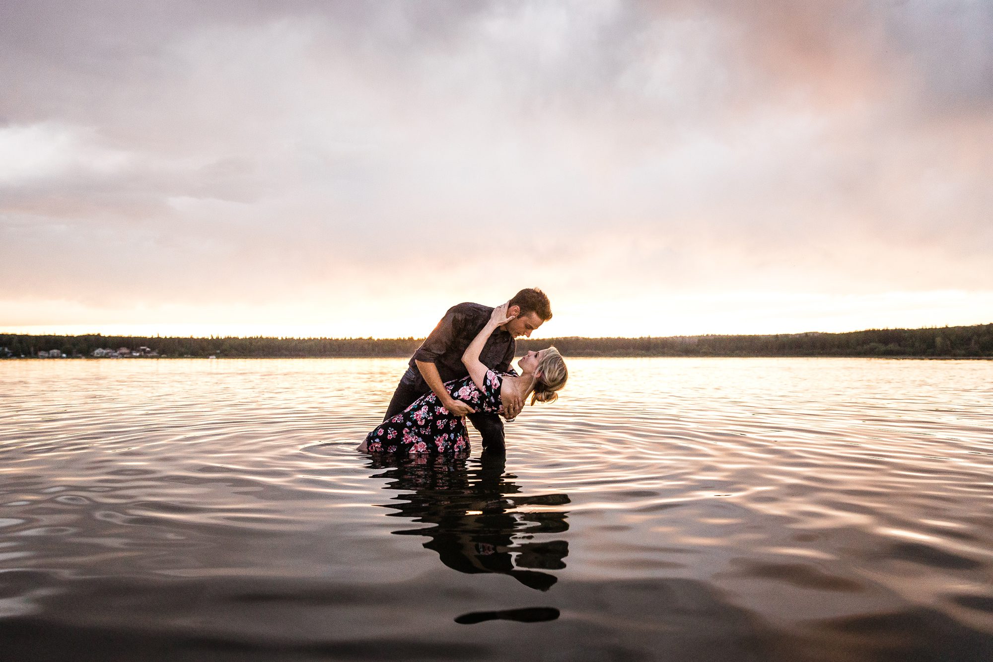 Sometimes I just get these ideas in my head, and I write them down and hope that one day I’ll be able to do a shoot like that. When I put it out there that I was looking for a couple willing to be submerged fully clothed in water, I had a ton of responses. I chose Jadey and Mike, and had so much fun out at Wabamun with them! They’ll be celebrating their first anniversary in a few months, congratulations to them! Here’s a link to their wedding day: Jadey and Mike are Married!