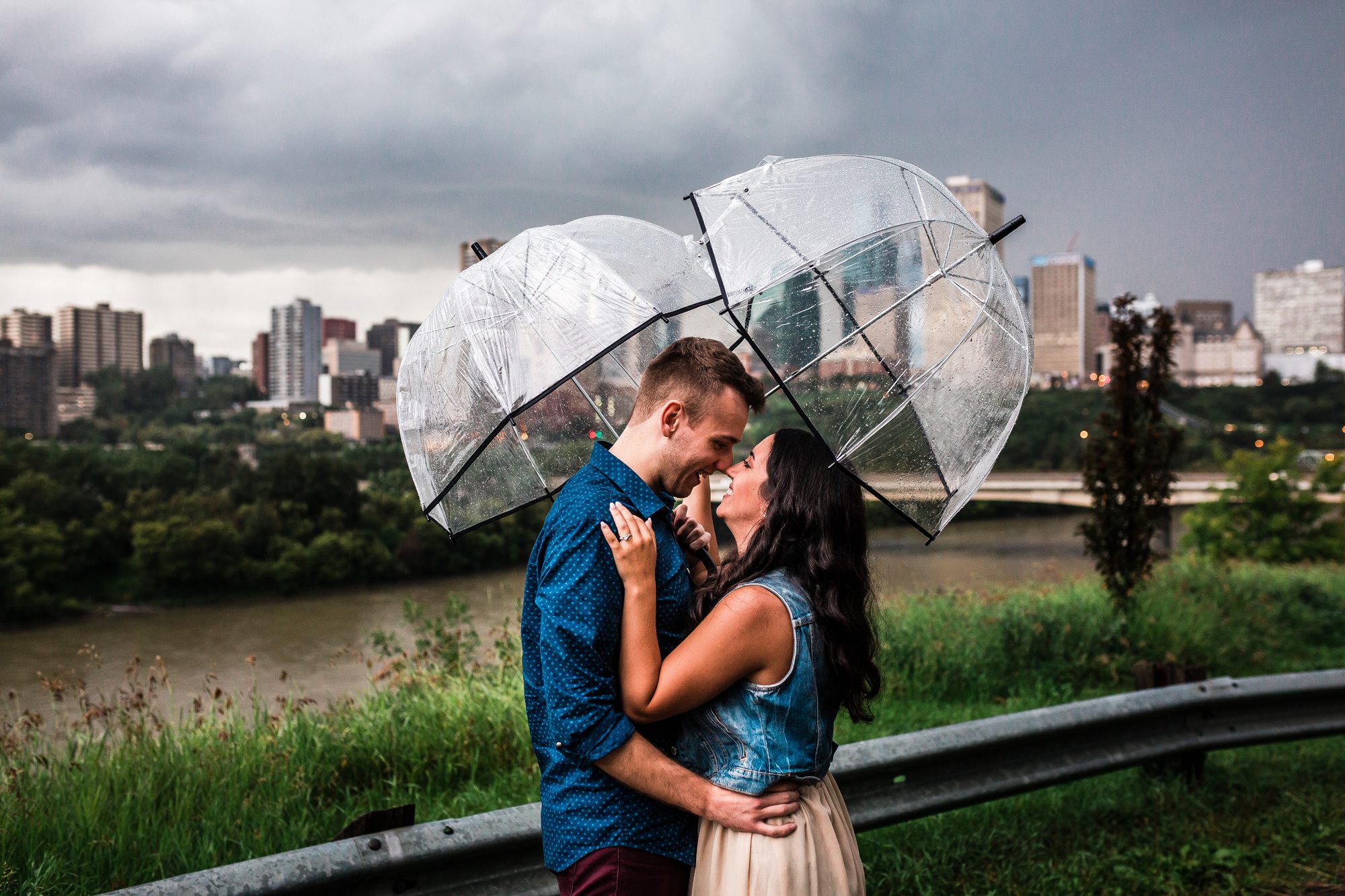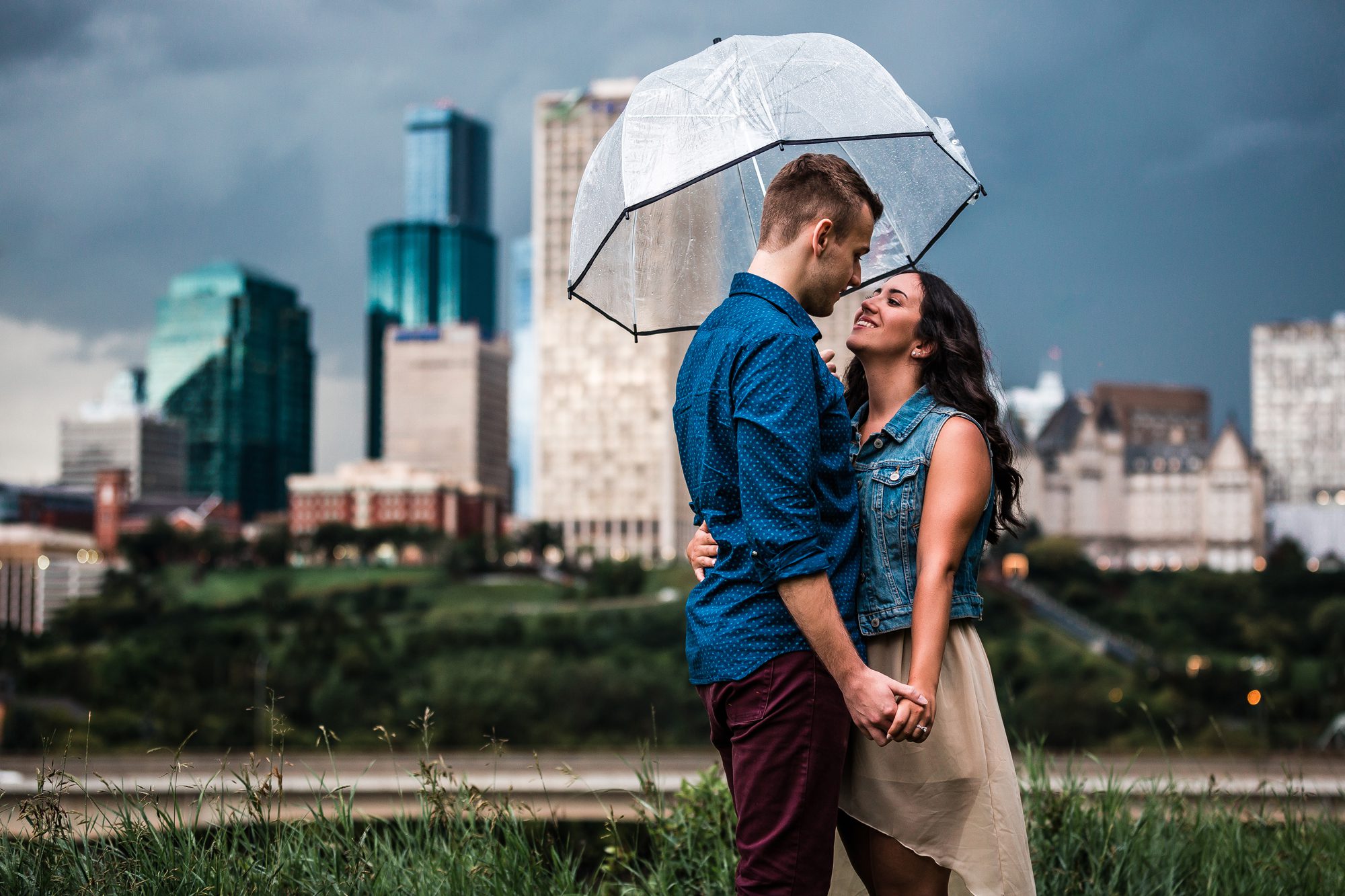 Elise and Storm’s engagement session was pretty fitting! It was a stormy evening, but once we waited out the torrential downpour of rain, the skies opened up with an epic dark cloudy background. These two were troopers through it all, even with the lighting and thunder! (We waited it out in the car). I can’t wait for their wedding this year!